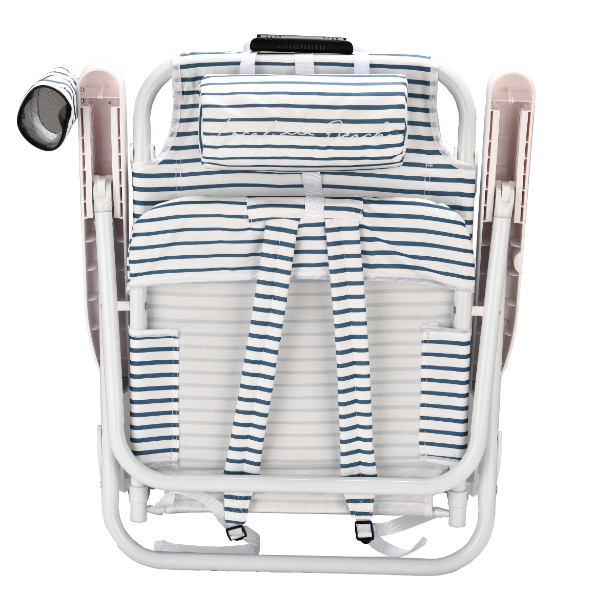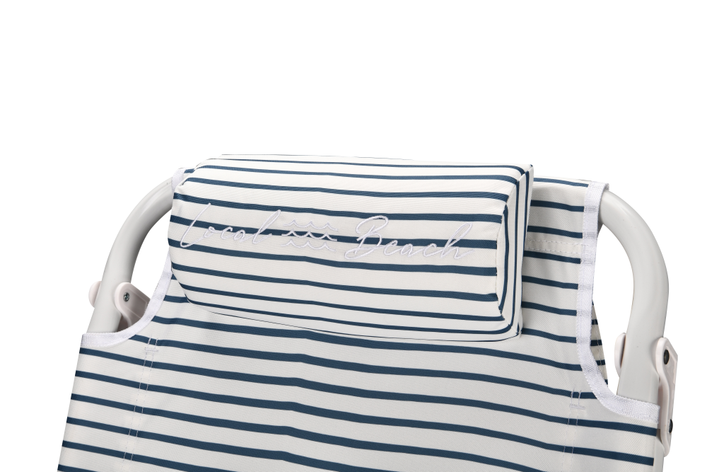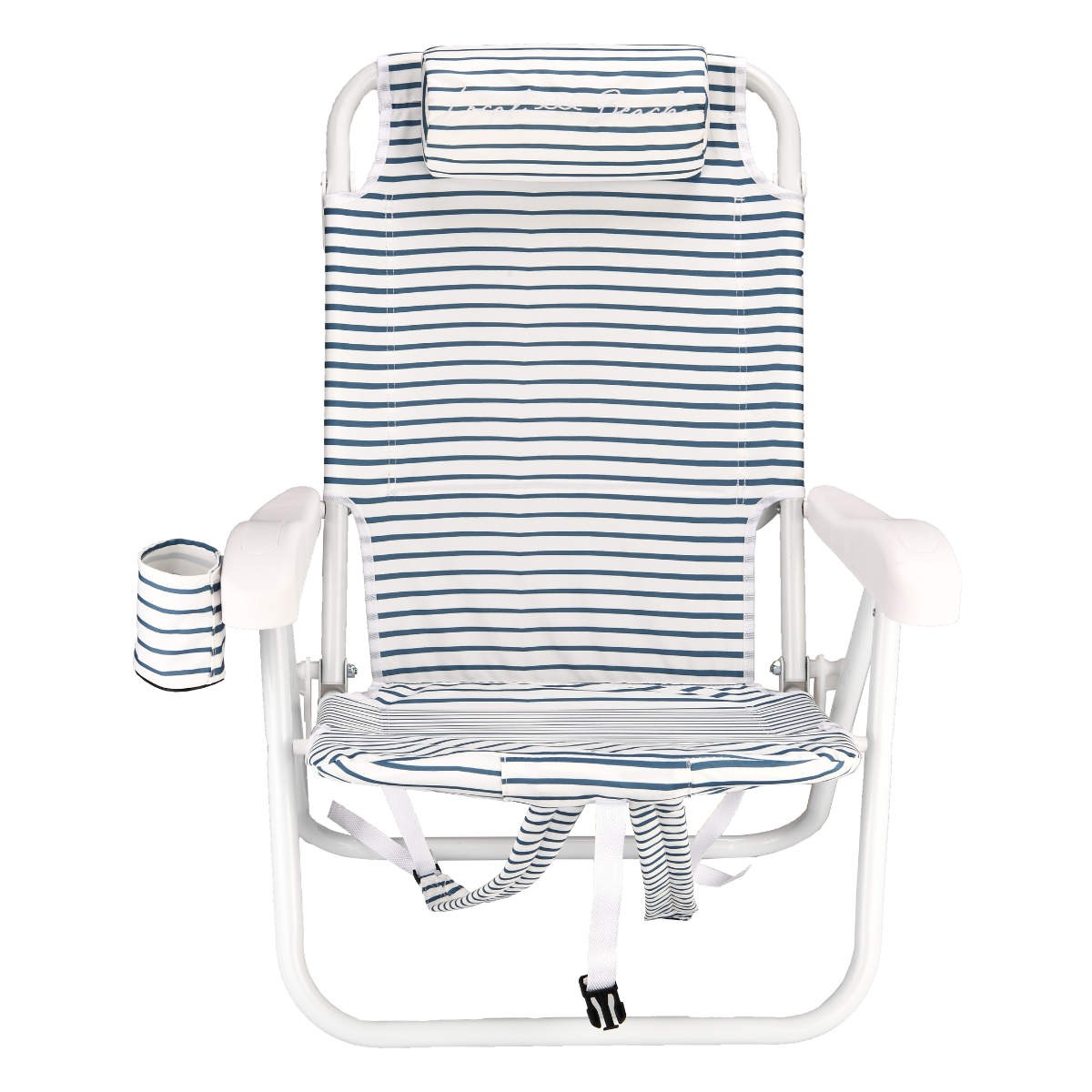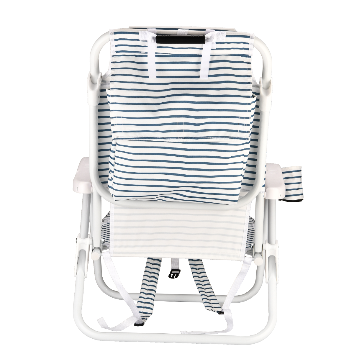 Local Beach Brush Stripe Back Pack Beach Chair in Blue and White