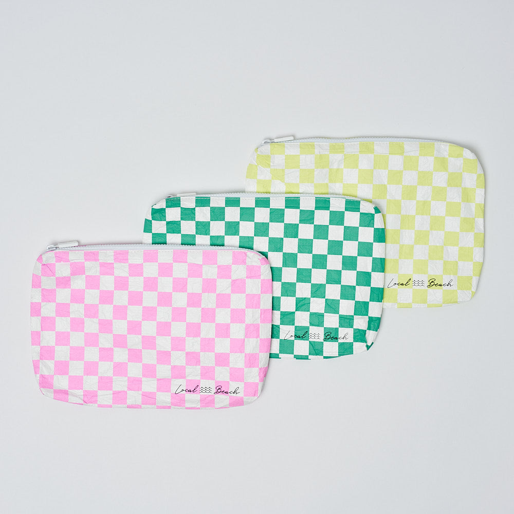 This new pouch comes in 2 sizes -Small and Medium. This is the perfect organizer for your travel toiletries, make up, wet bikinis, snacks, pens & pencils and anything else you can think of that you want to pouch in your day to day lives. Beach ready, Sand Tested, and Stays More Dry