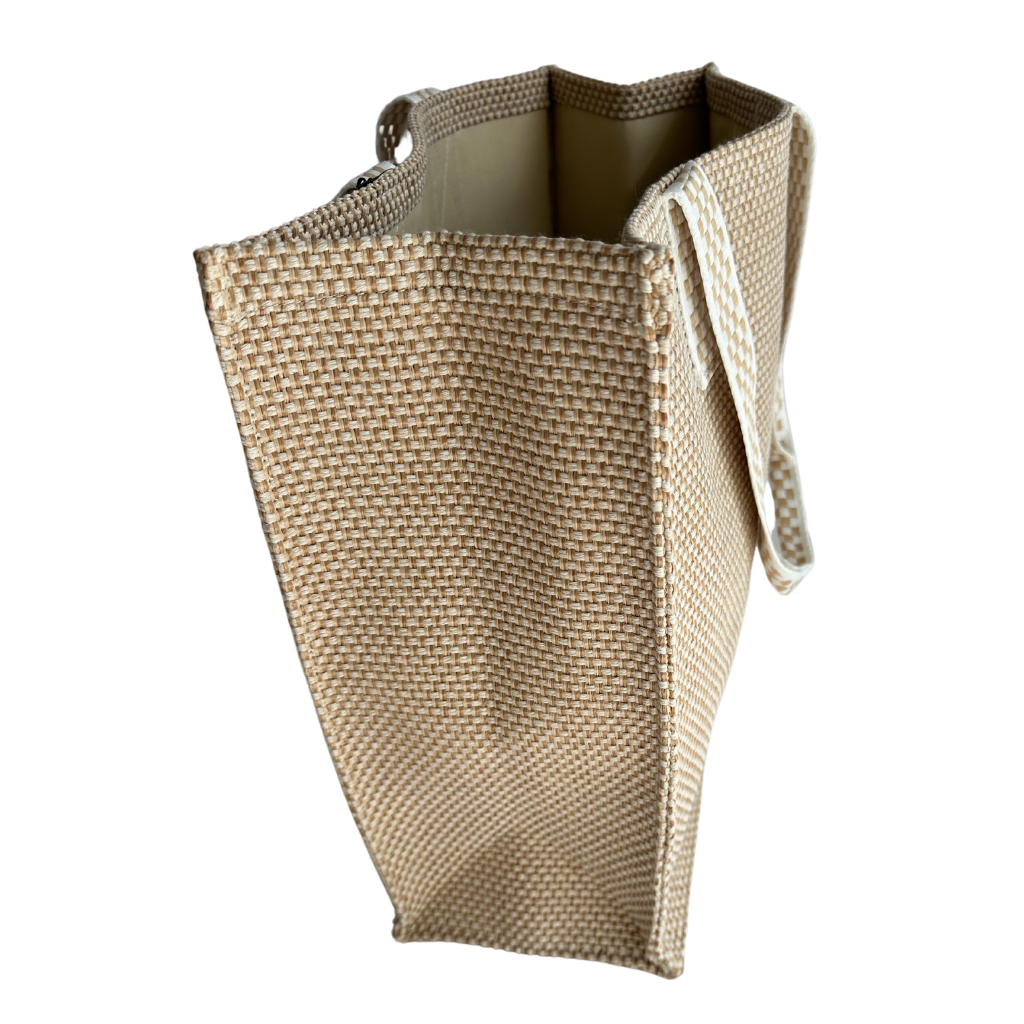60%Poly 40% Cotton. Soft Poly/Cotton woven textured Surface. Cotton twill strapping. Inside stash & zip pockets for your phone & cash. Side Gusset snaps for a less than full carry.