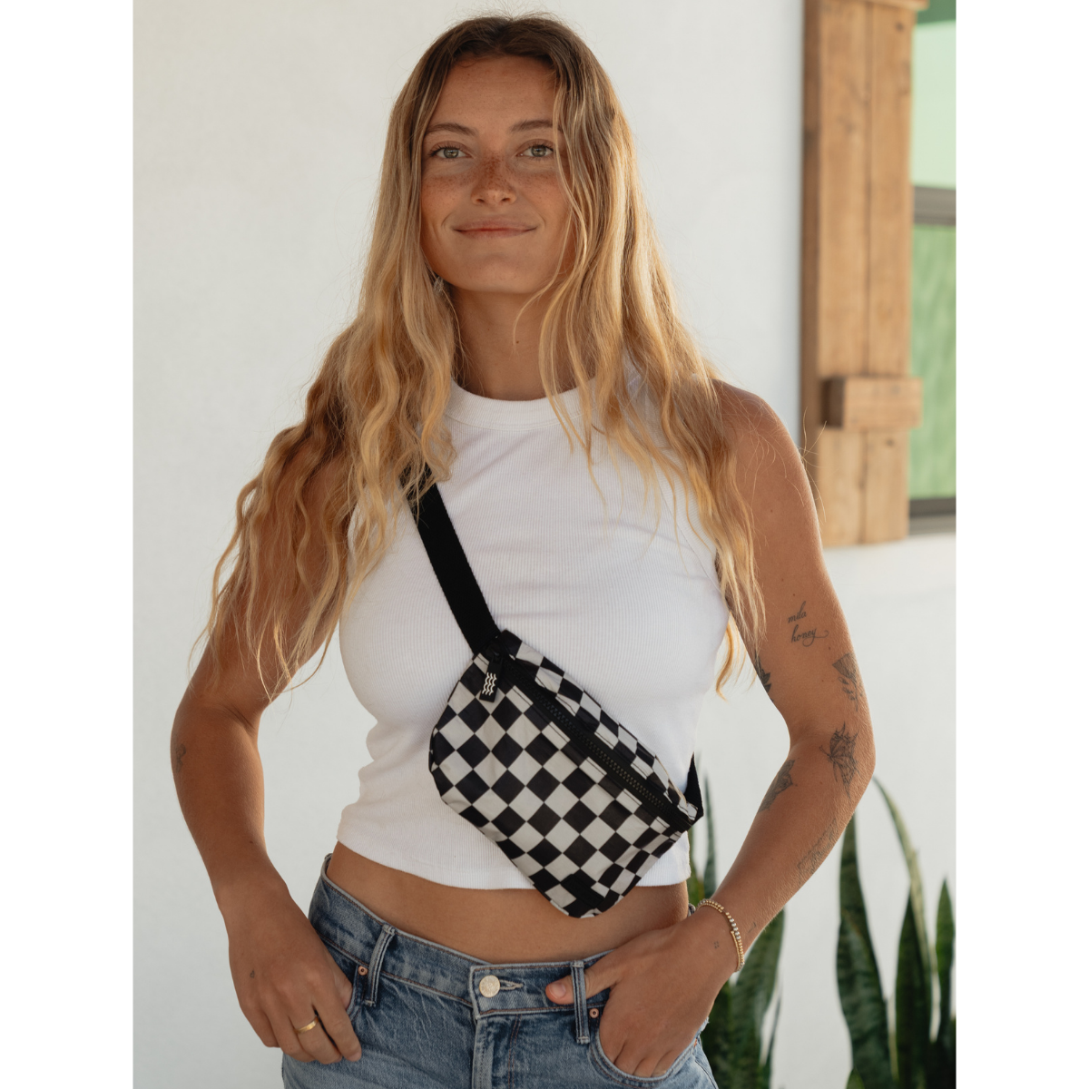 Black Checker Belt Bag
