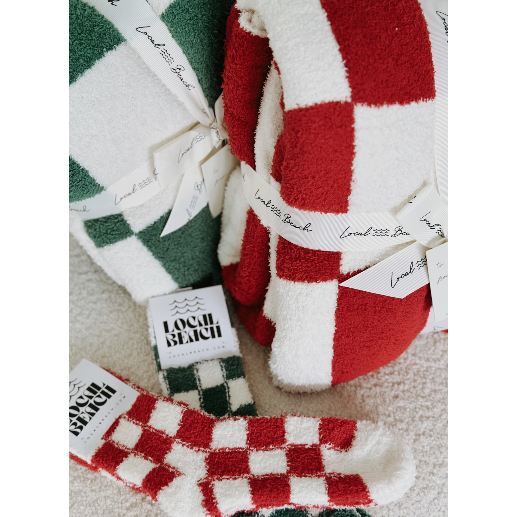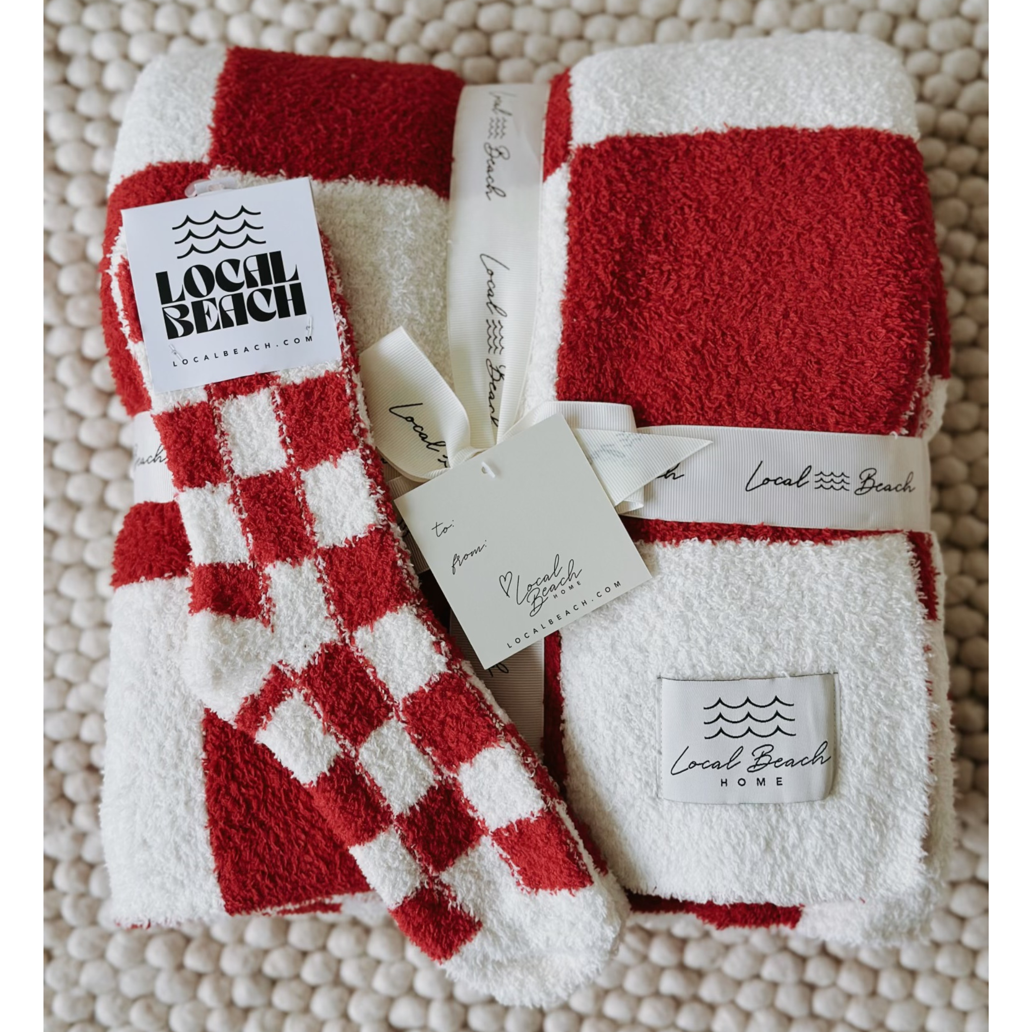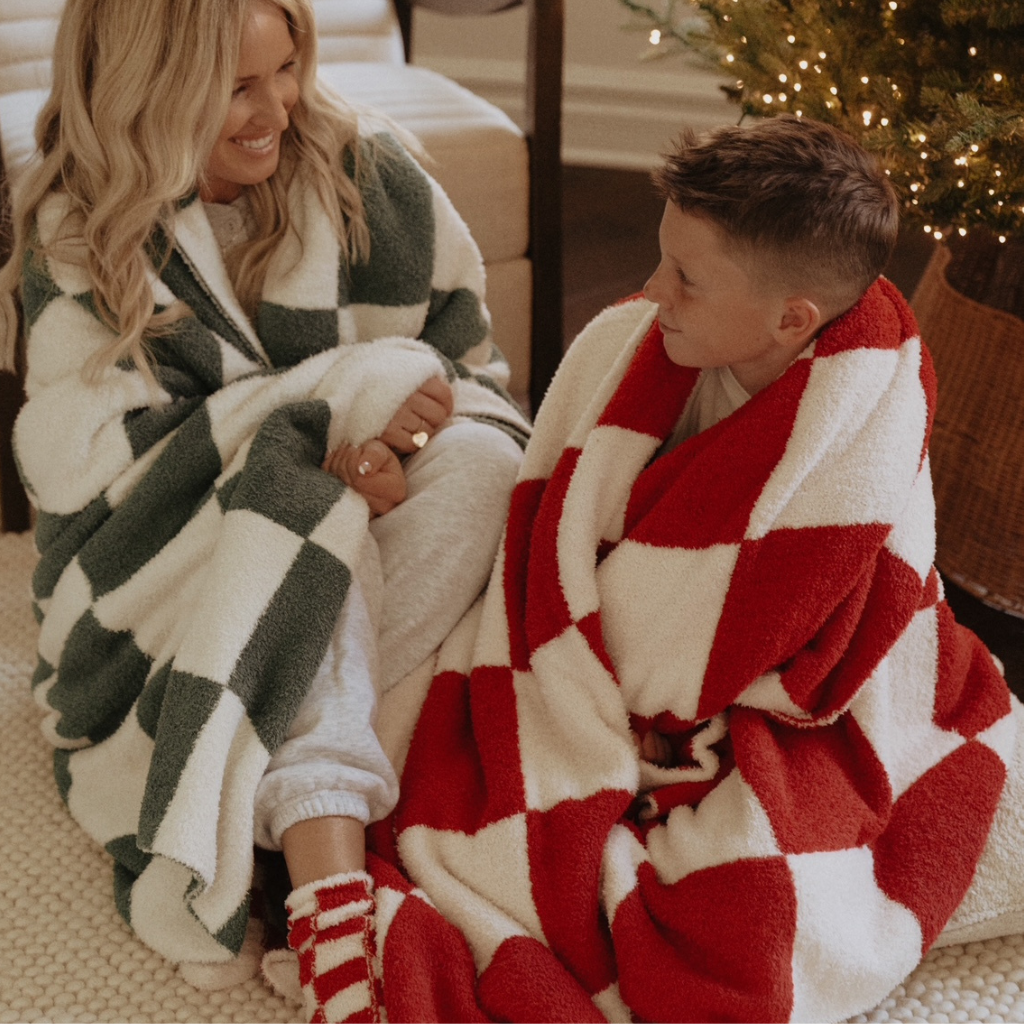 Holiday Red/Creme Checker Cozy Luxe Home Blanket