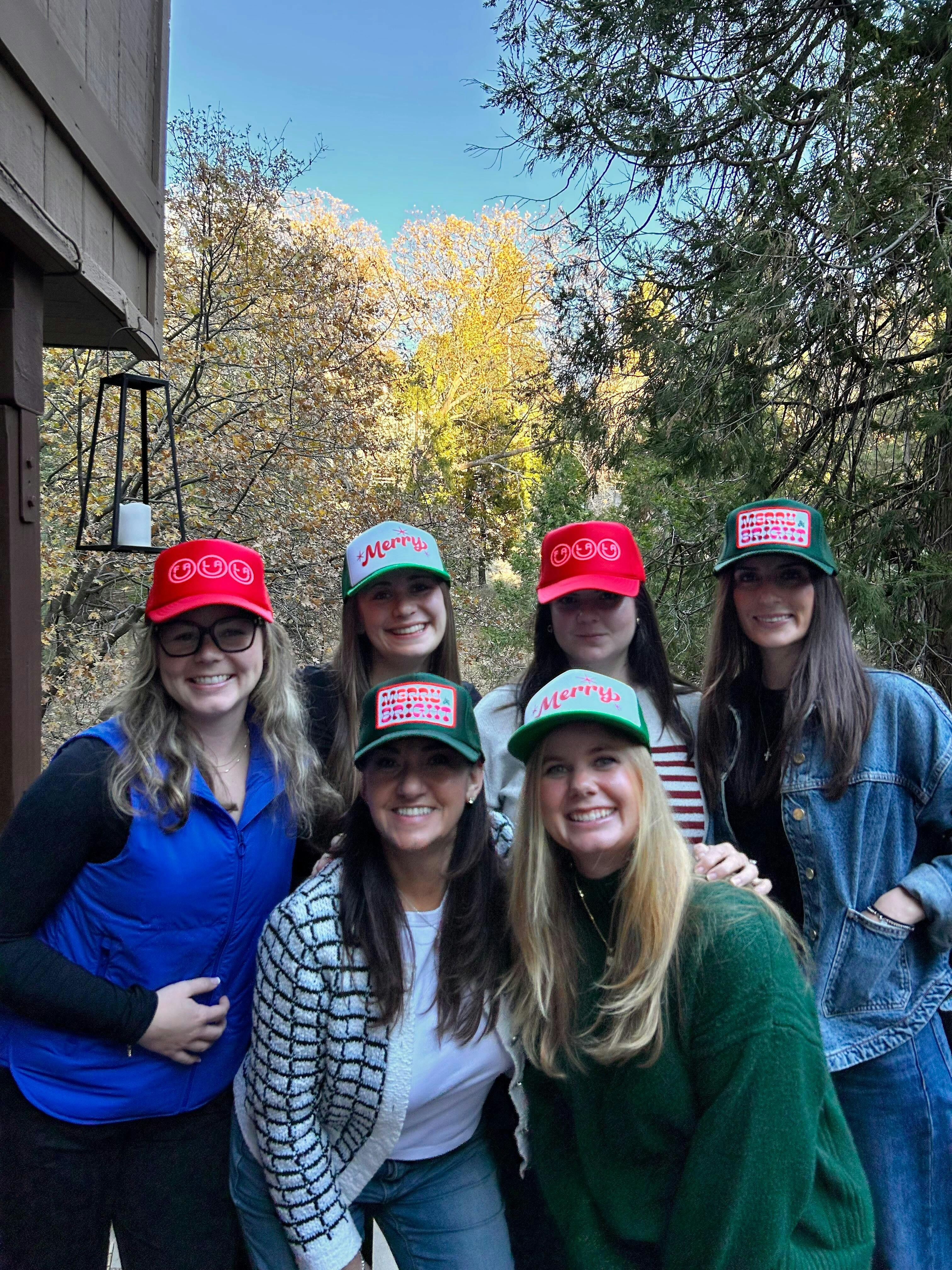 Spreading the Holiday Cheer! This his or hers trucker is part of our Holiday Collection. Cute and perfect for all your Holiday events.