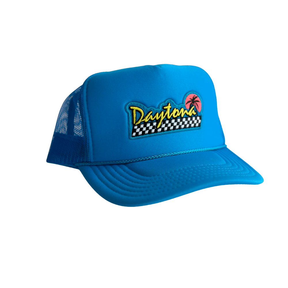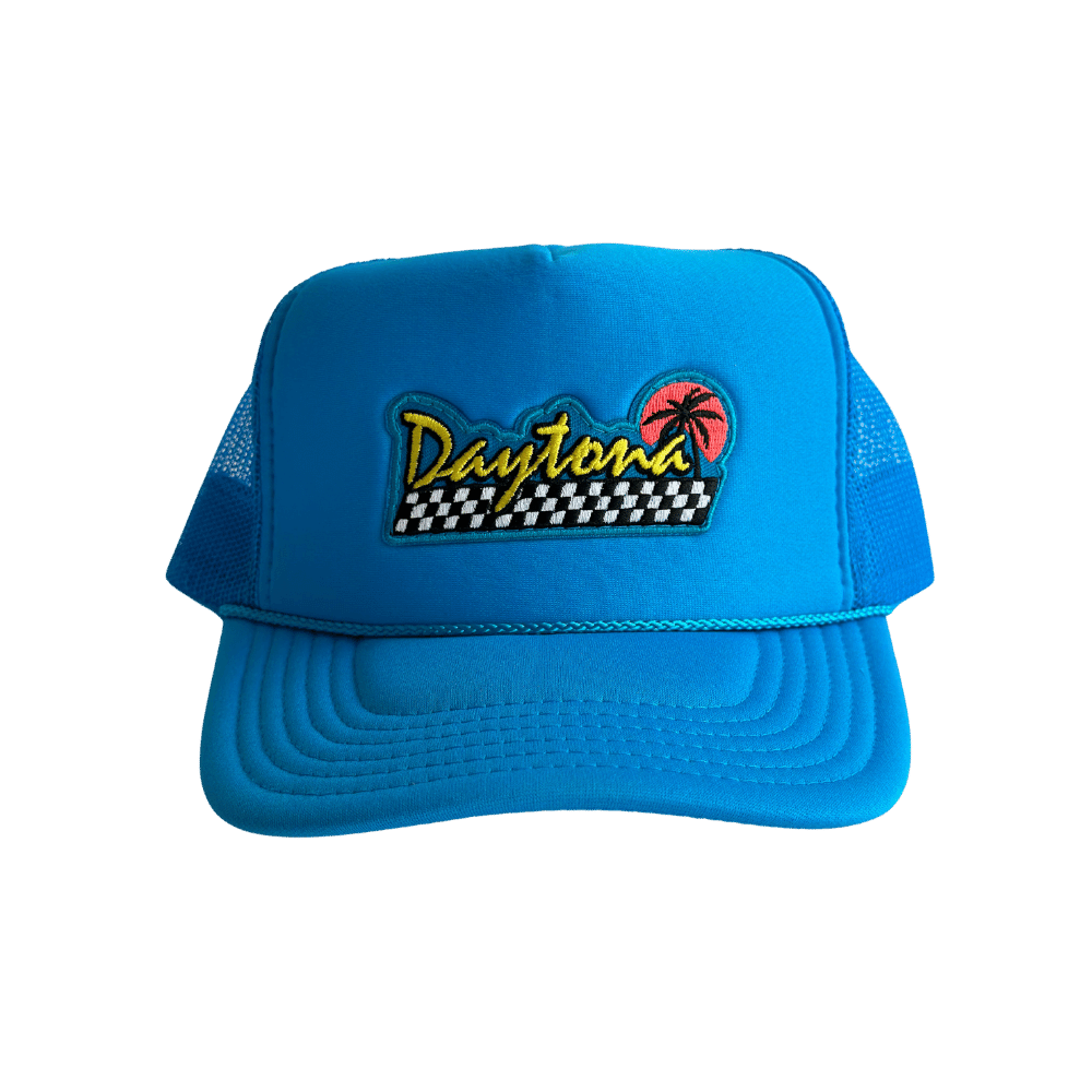Race inspired, beaches approved. This his or hers trucker is part of our Destination Collection. Cute and perfect for your next day in the sun.