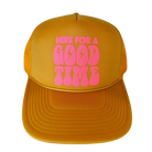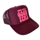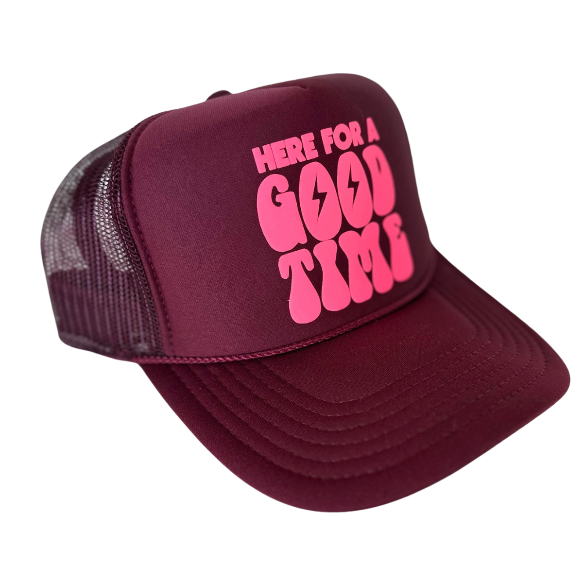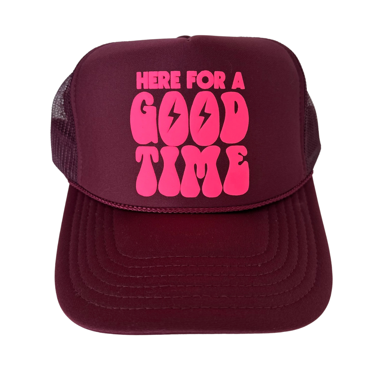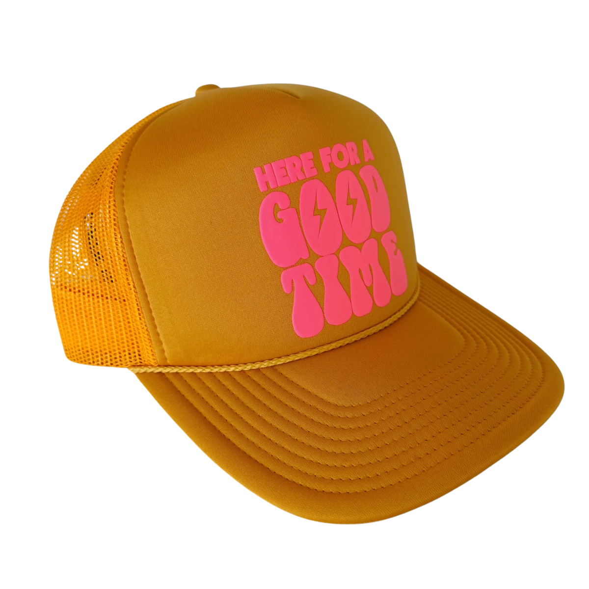 Only Good Times in this Trucker hat! Part of our Seasonless Celebration Collection. Cute and perfect for your next day of fun or night in your favorite dive bar.