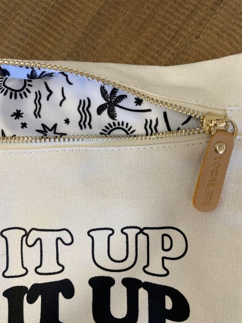 Go on vacation, gift give, or day trip with our fun new canvas traveler bags. Lightweight and double lined to keep your gear intact. Great for sunscreen, makeup, all handbag essentials, and anything else you want to stash or carry.