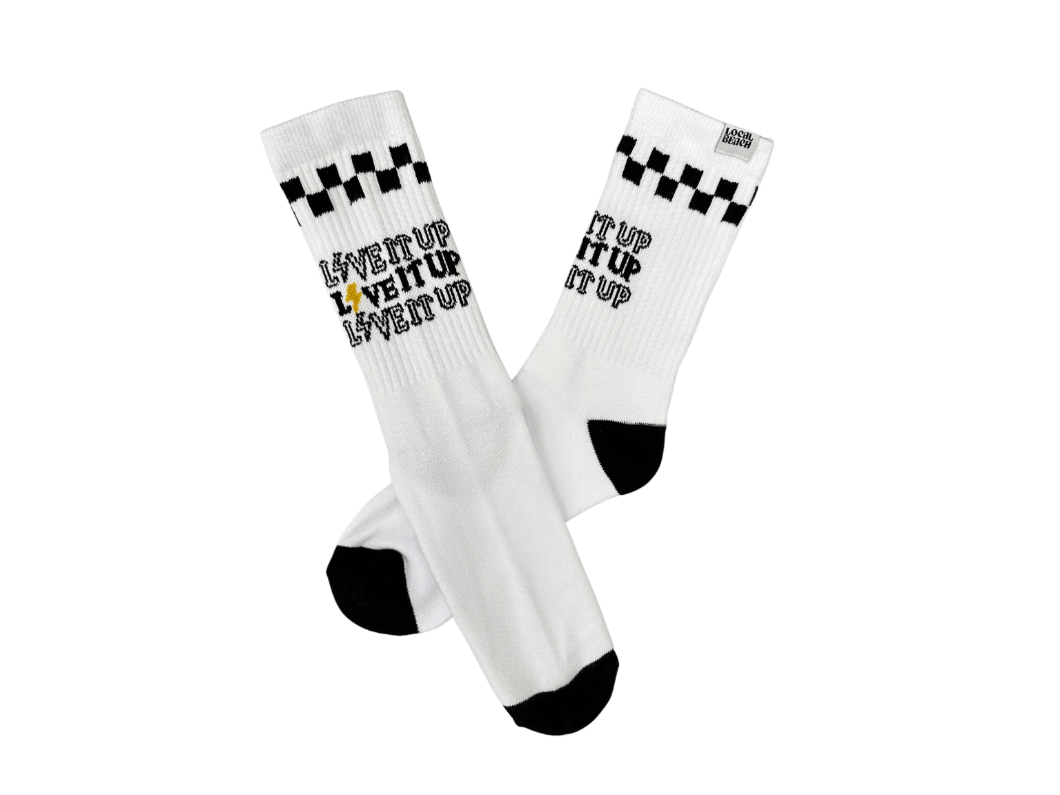 Introducing the Local Beach Crew Sock Collection. Fun and comfy elastic Cotton/Poly mid calf crew fit. A classic sock height. Perfect look in your cutest running shoes. You'll love them!
