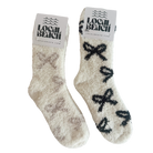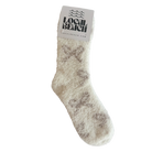 Introducing the Bow Local Beach Cozy Socks. These are part of our Bow Cozy Collection. Warm and Fuzzy incredibly cozy crew slipper socks. Feather Knit construction with an ultra soft hand. Perfect for home, travel, and beyond. Cozy up and stay warm with the softest socks ever.