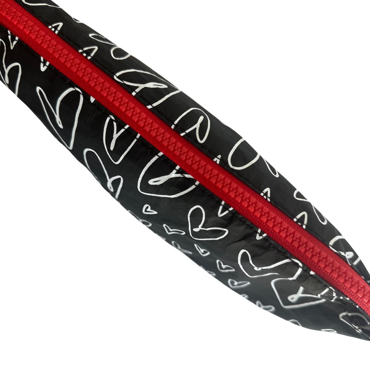 The Local Beach Love collection. A perfect gift for Valentine's day or just to send to the person you Love. Black ground with white hearts and a fire red zipper to tie it all together. This is the perfect organizer for your travel toiletries, make up, wet bikinis, snacks, pens & pencils and anything else you can think of that you want to pouch in your day to day lives. Beach ready, Sand Tested, and Stays More Dry.