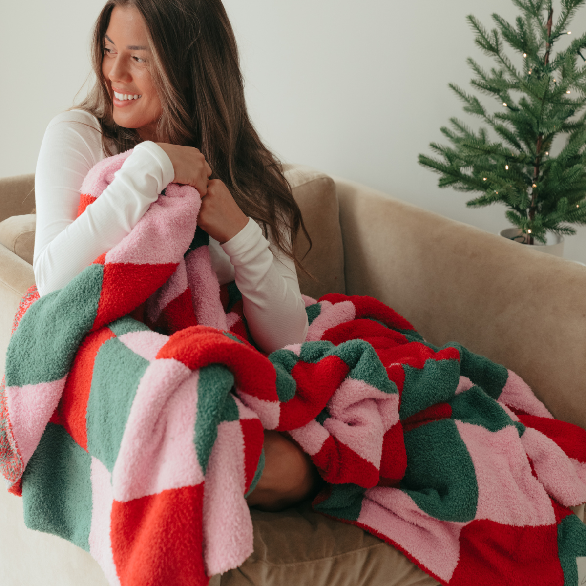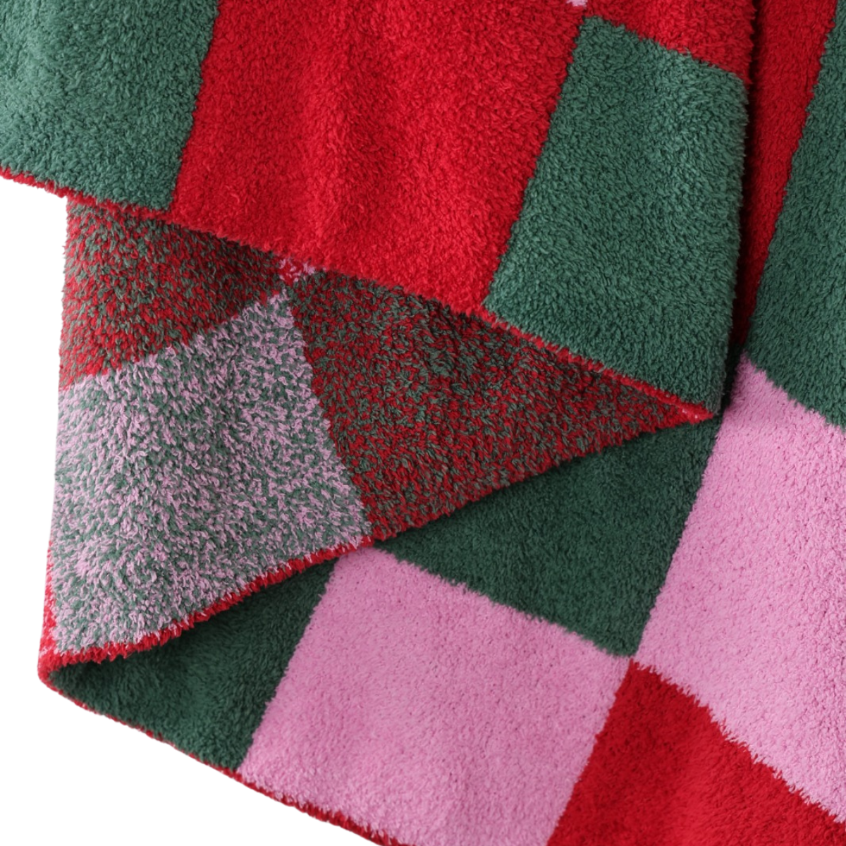 Mixed Check Holiday Stripe Cozy Luxe Home Blanket