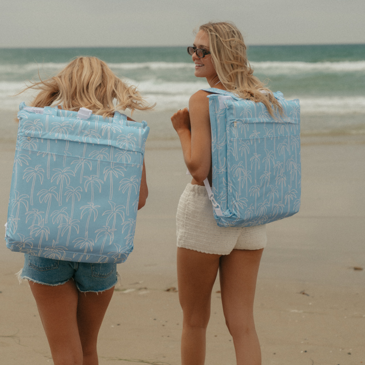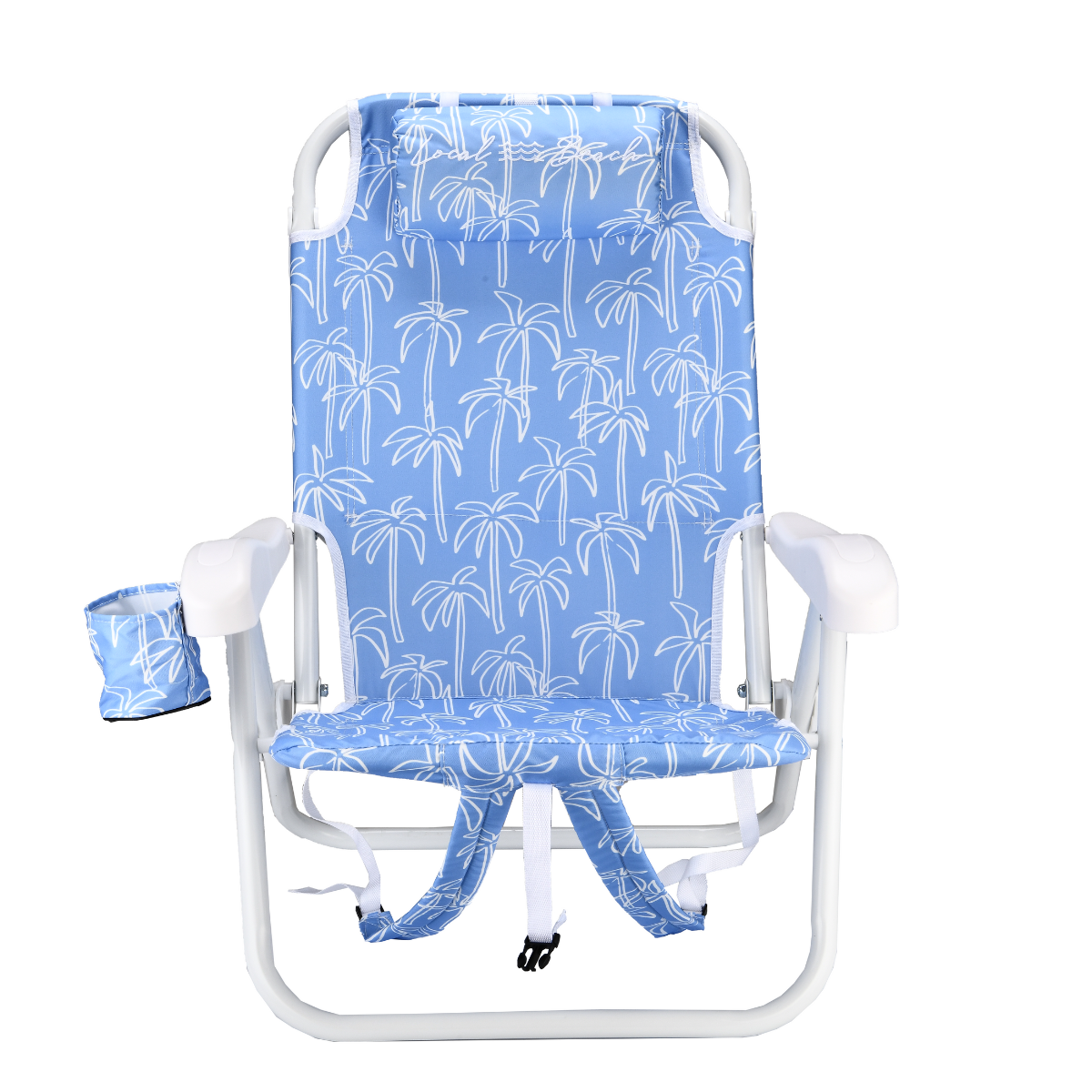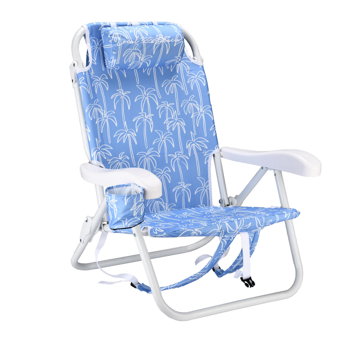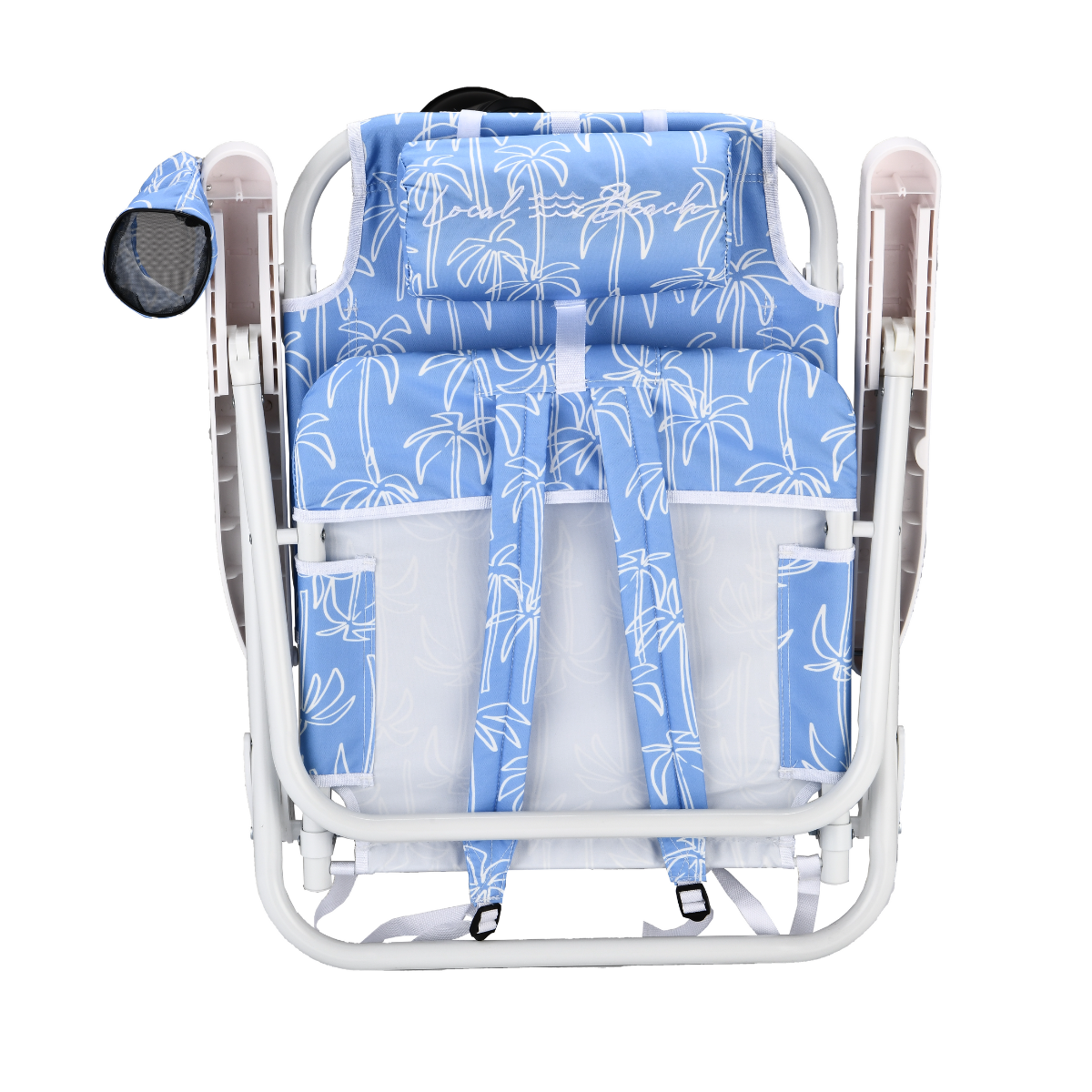 Local Beach Multi Palms Back Pack Beach Chair in Blue