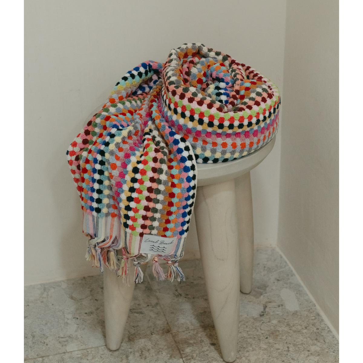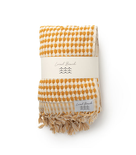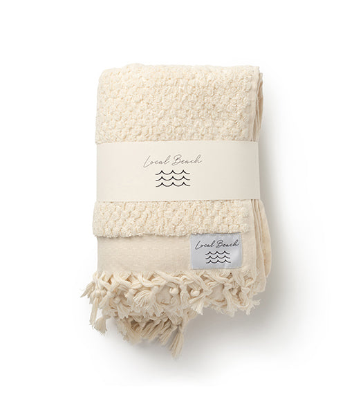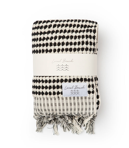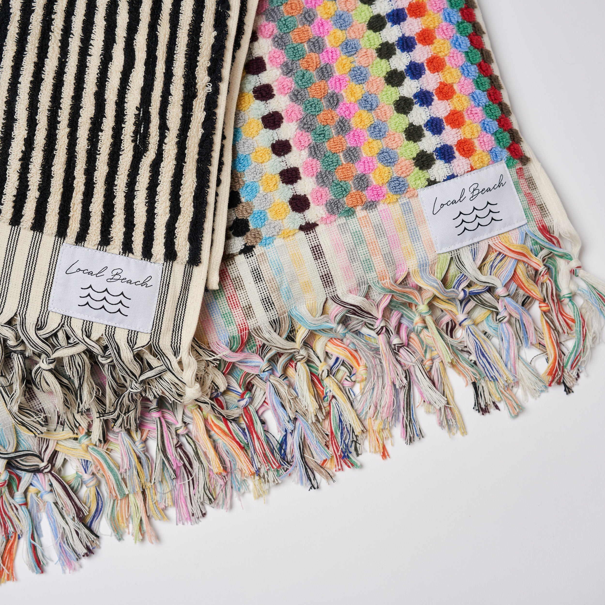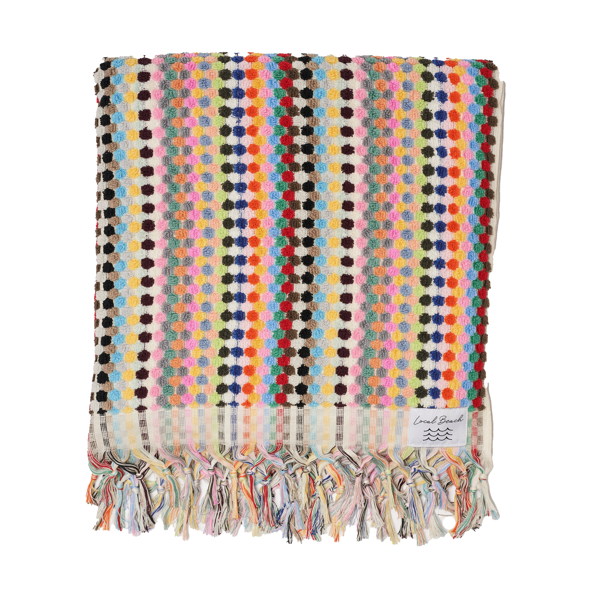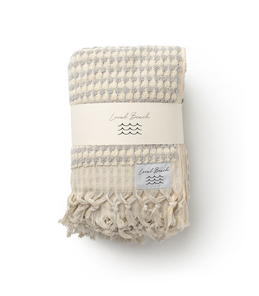 100% cotton construction. Bring this lavish Local Beach towel to the sand or poolside. This towel is an absolute taste of luxury. Heavyweight feel and textured beads will spoil your next adventure. Dresses any outdoor living area, chaise lounge, ottoman or daybed. The perfect towel for you outdoor living space