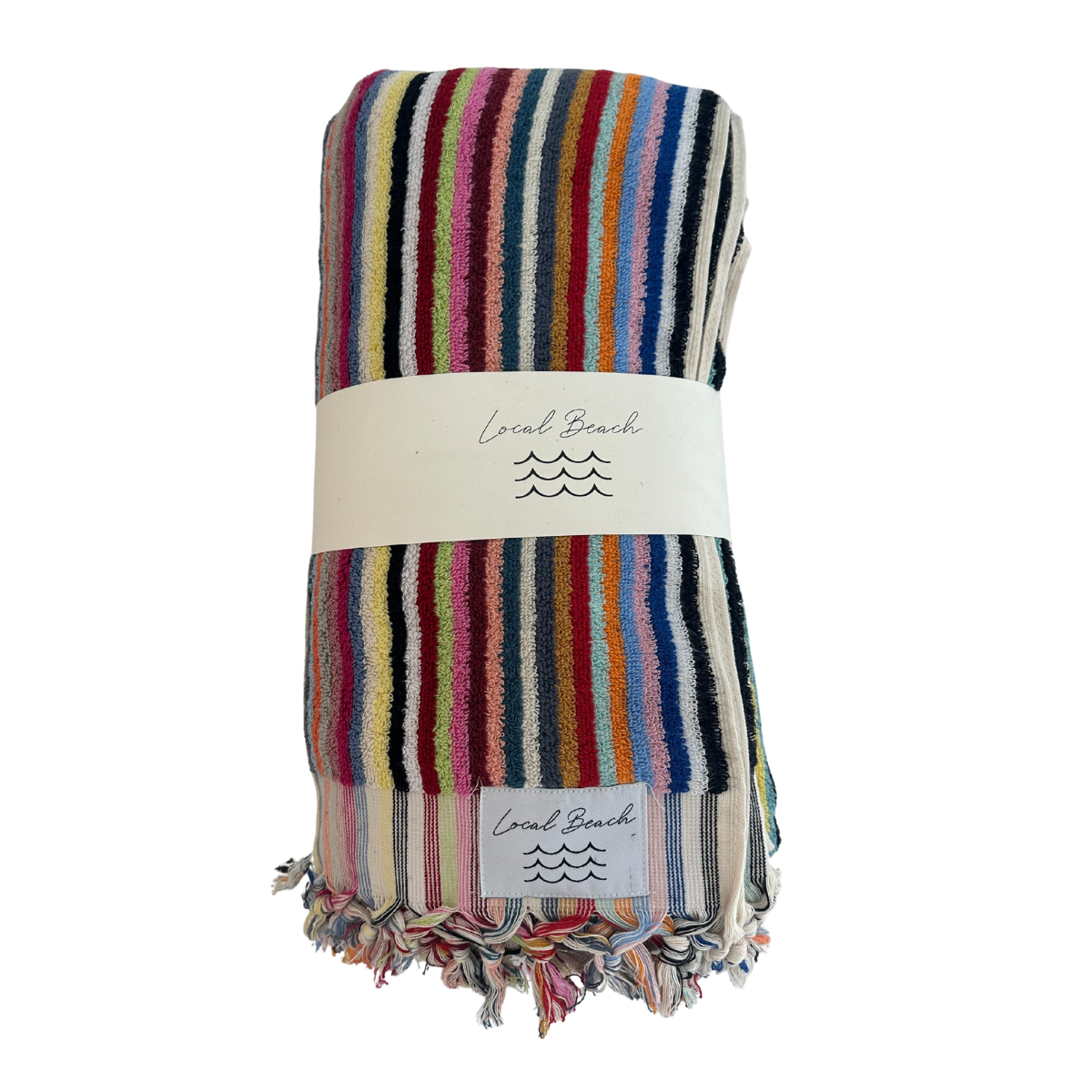 100% cotton construction. Bring this lavish Local Beach towel to the sand or poolside. This towel is an absolute taste of luxury. Heavyweight feel and textured beads will spoil your next adventure. Dresses any outdoor living area, chaise lounge, ottoman or daybed. The perfect towel for you outdoor living space