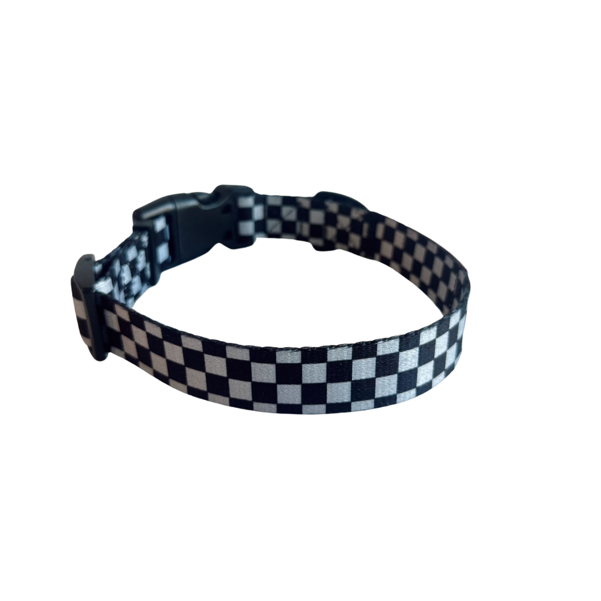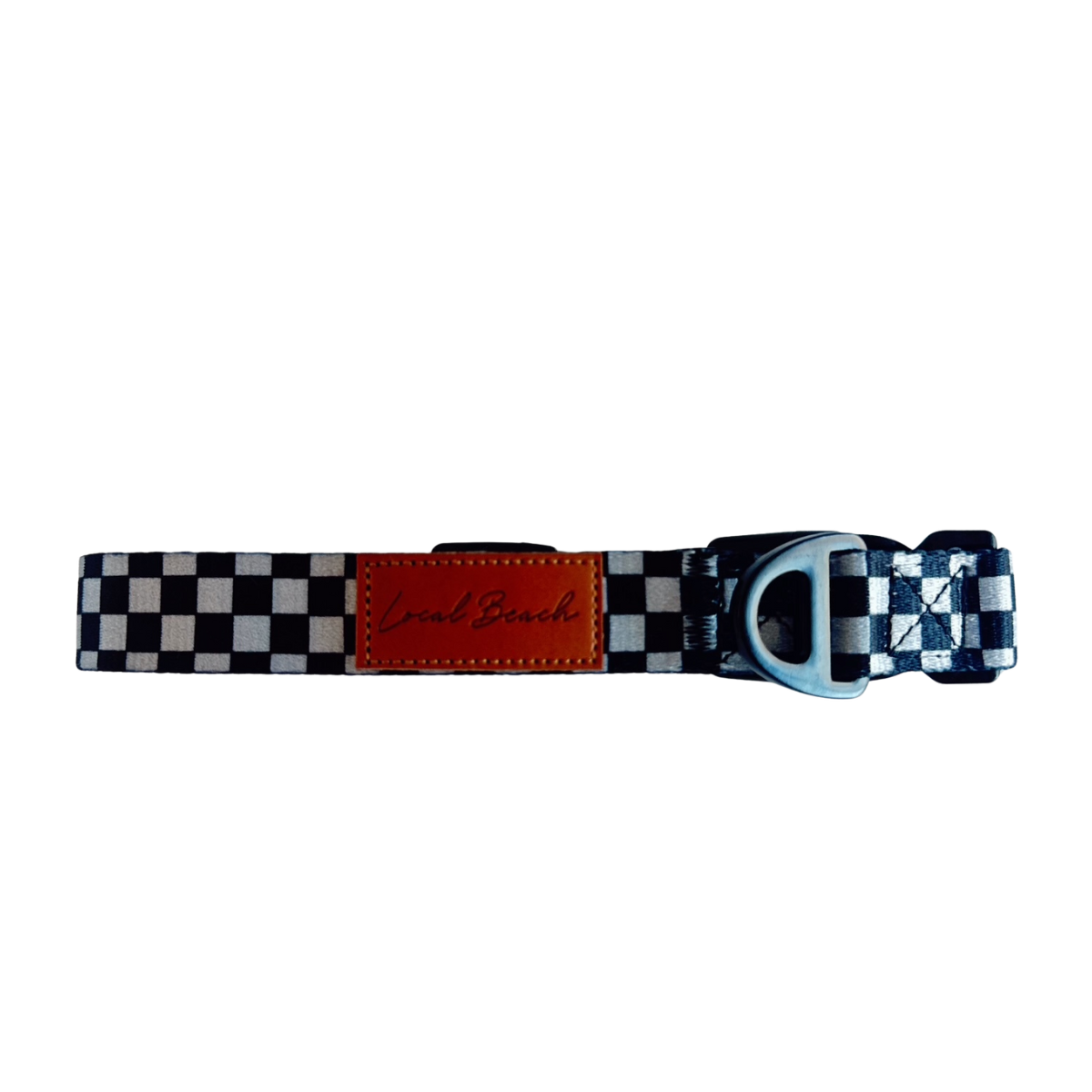 Local Beach Checker Adjustable Dog Collar Black