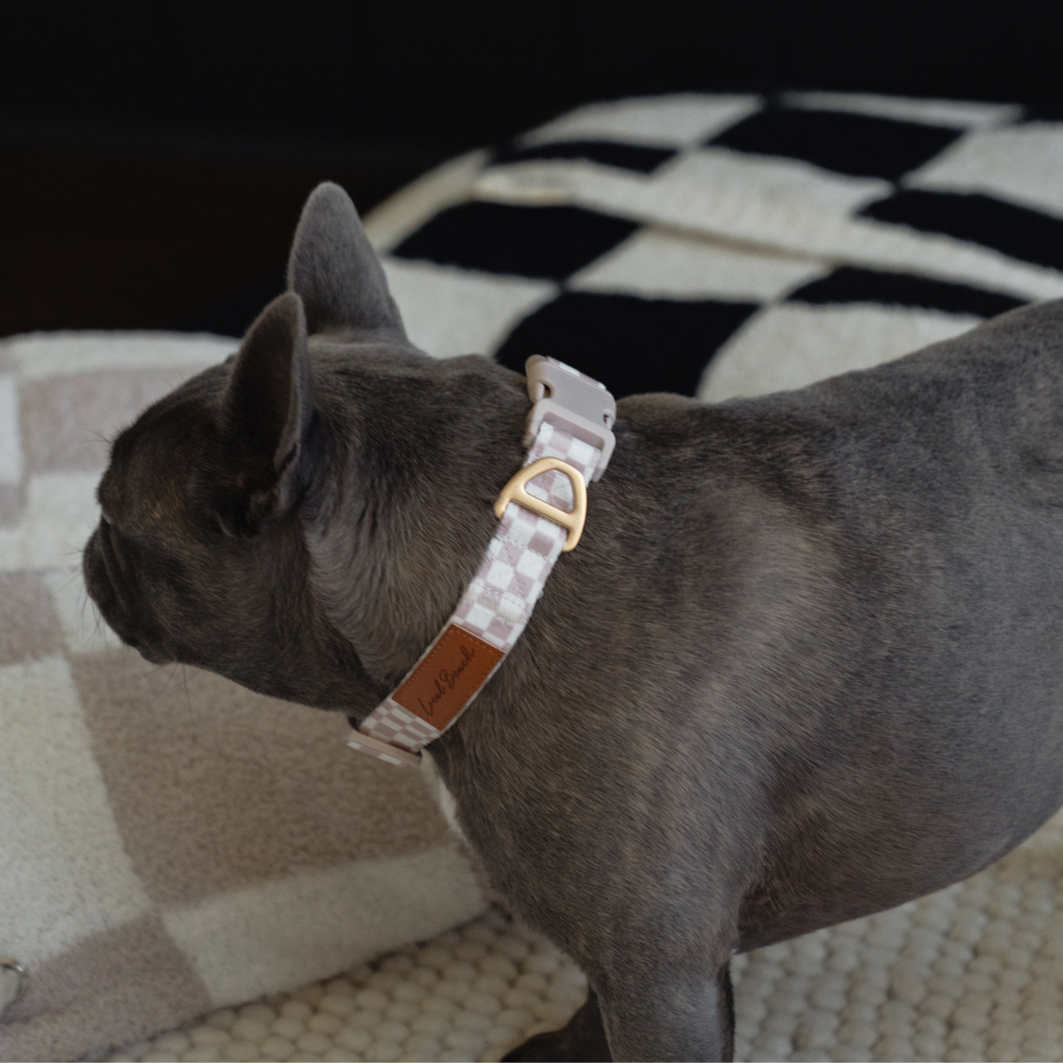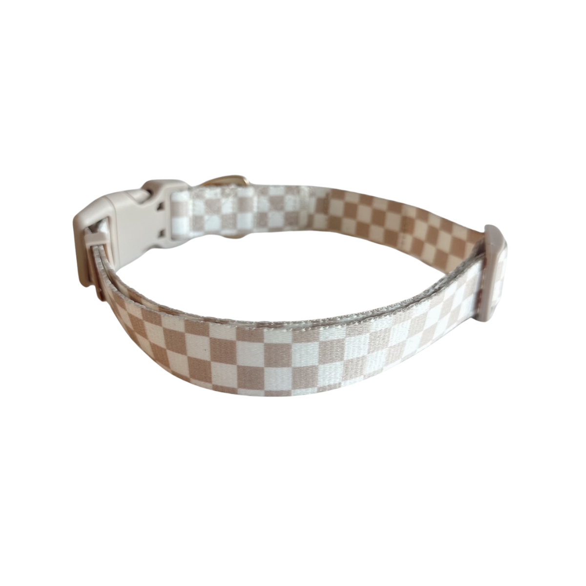 Local Beach Checker Adjustable Dog Collar Tan