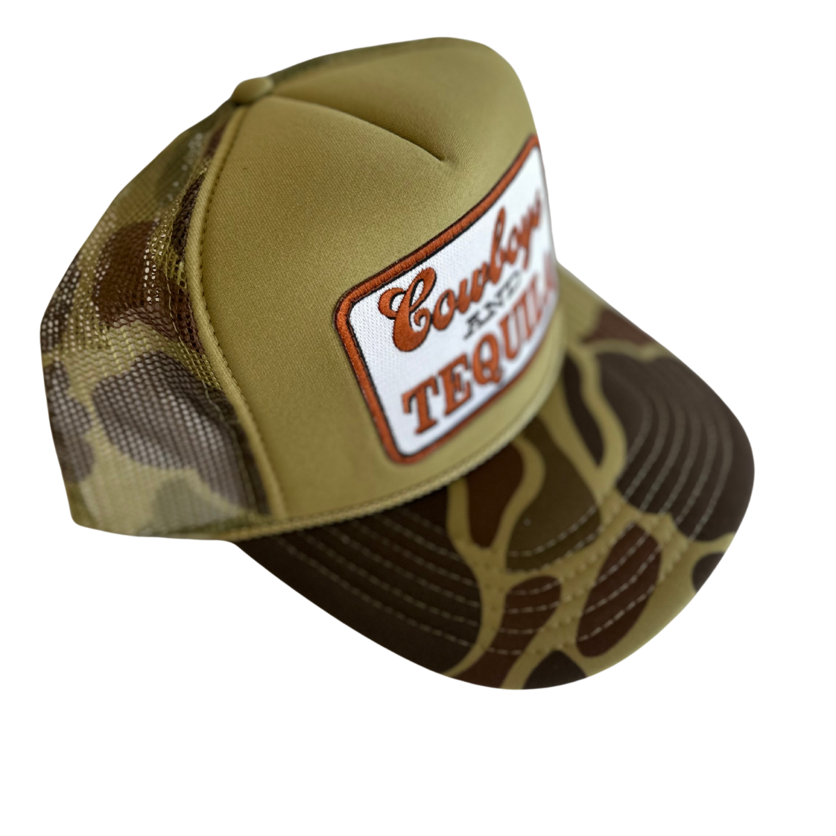 With its medium-profile fit and classic 5-panel foam front plus breathable mesh back, the Cowboys & Tequila Trucker keeps you cool and comfortable while serving up western-chic vibes.