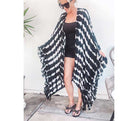 Local Beach Exclusive! Be on Vacay in the Local Beach Tie Dye Kimono Cover-Up! It's a soft Viscose Slub, Fine Weave with a Comfy Fit for any Trip. Ultra-Lightweight, perfect Drape, to just below the Knee Coverage with Side Slits. Armholes complete this Beachy Look. This Piece was Inspired by My Favorite (Now Aged) Cover-up of All-Time. It Won't Disappoint...