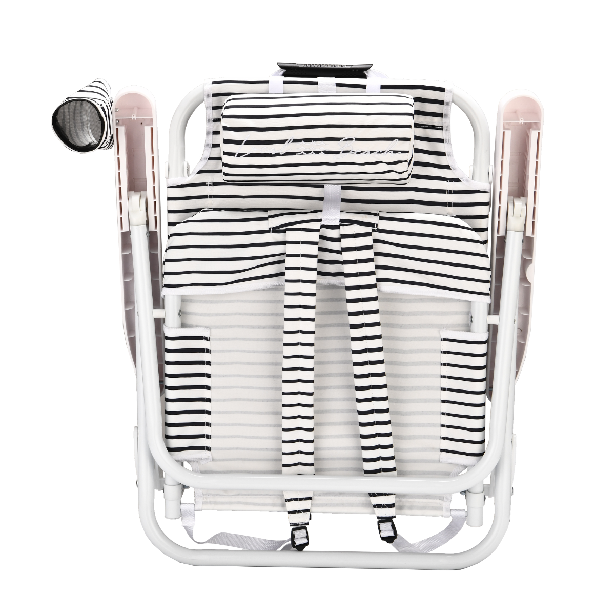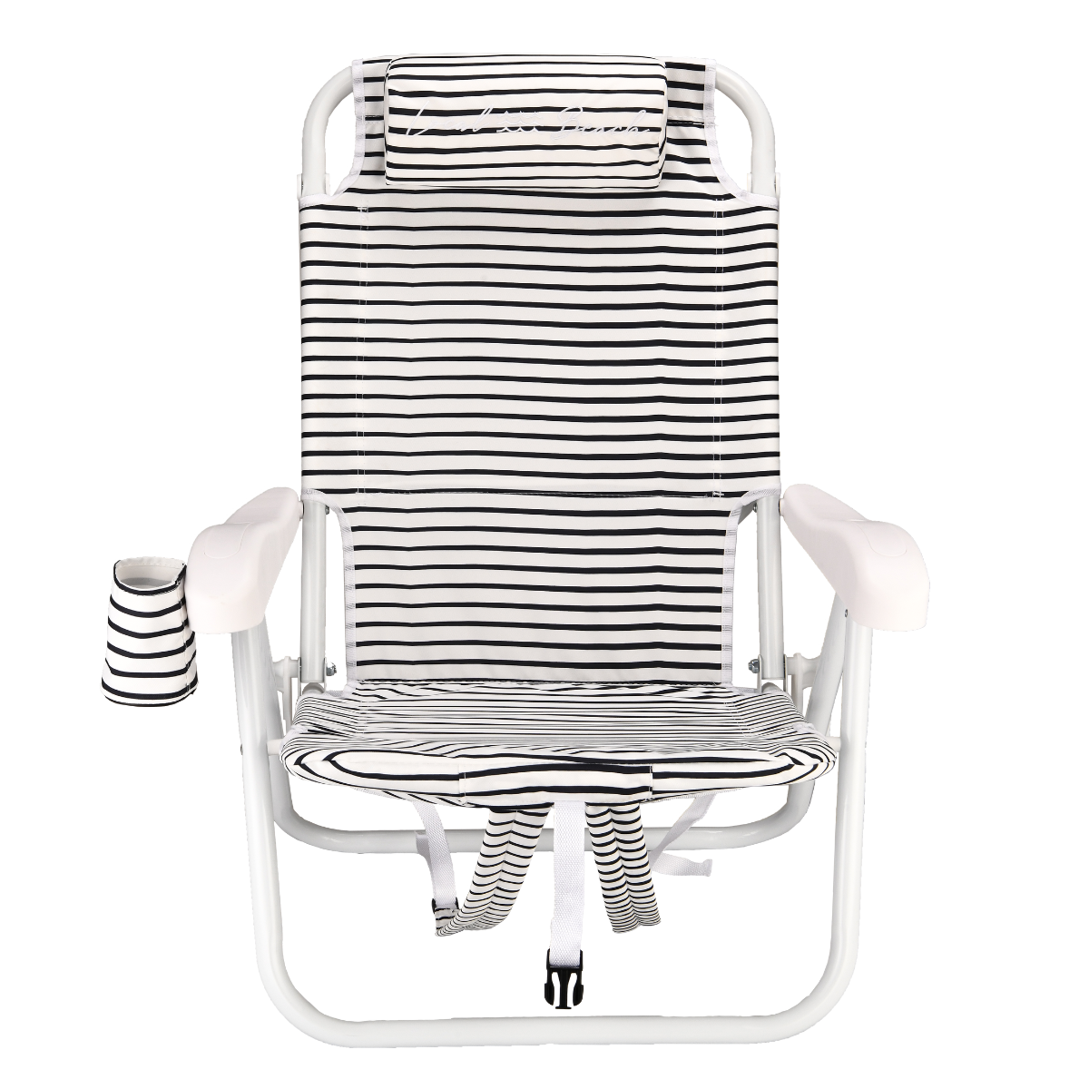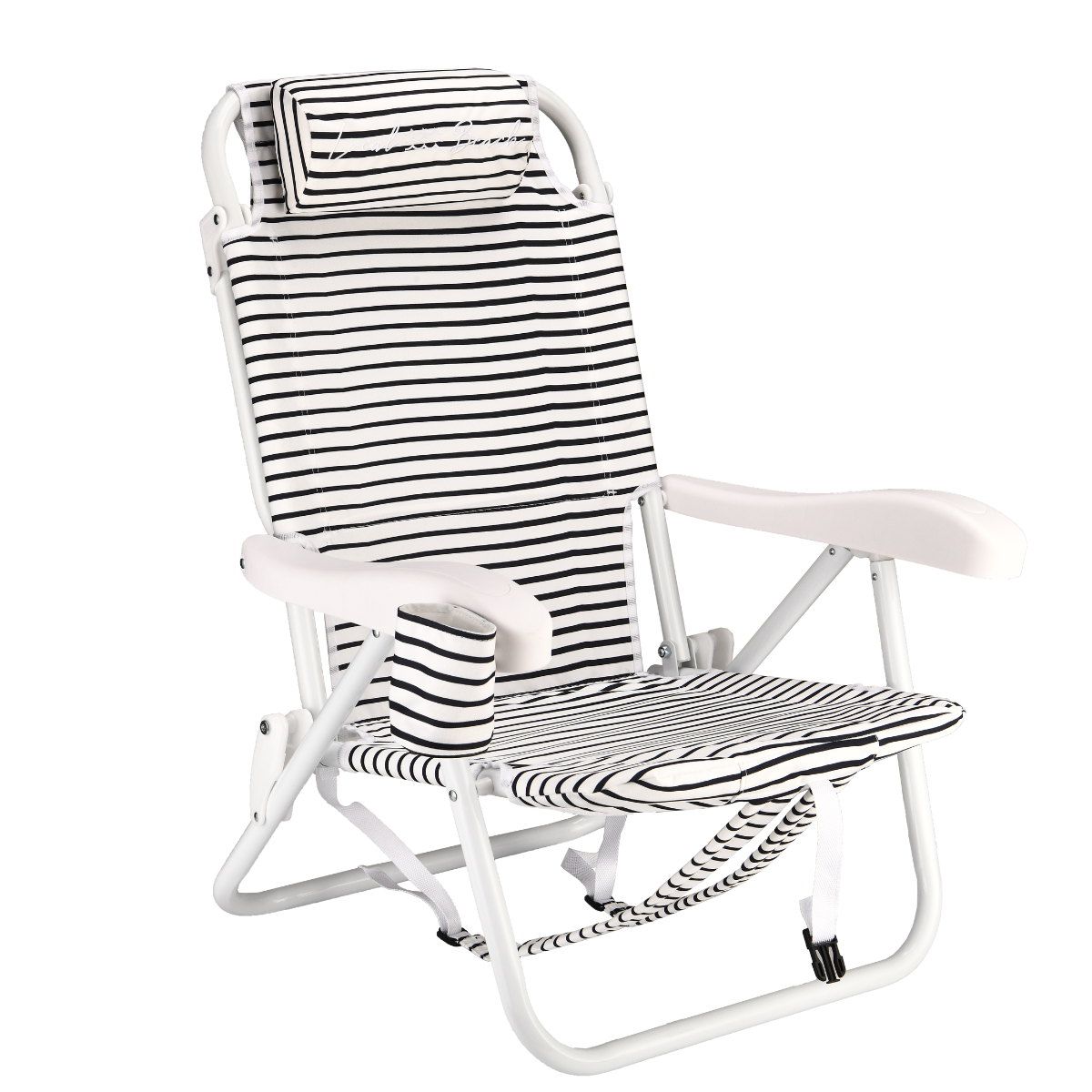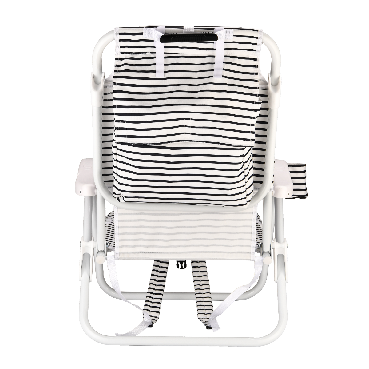 Local Beach Brush Stripe Back Pack Beach Chair in Black and White