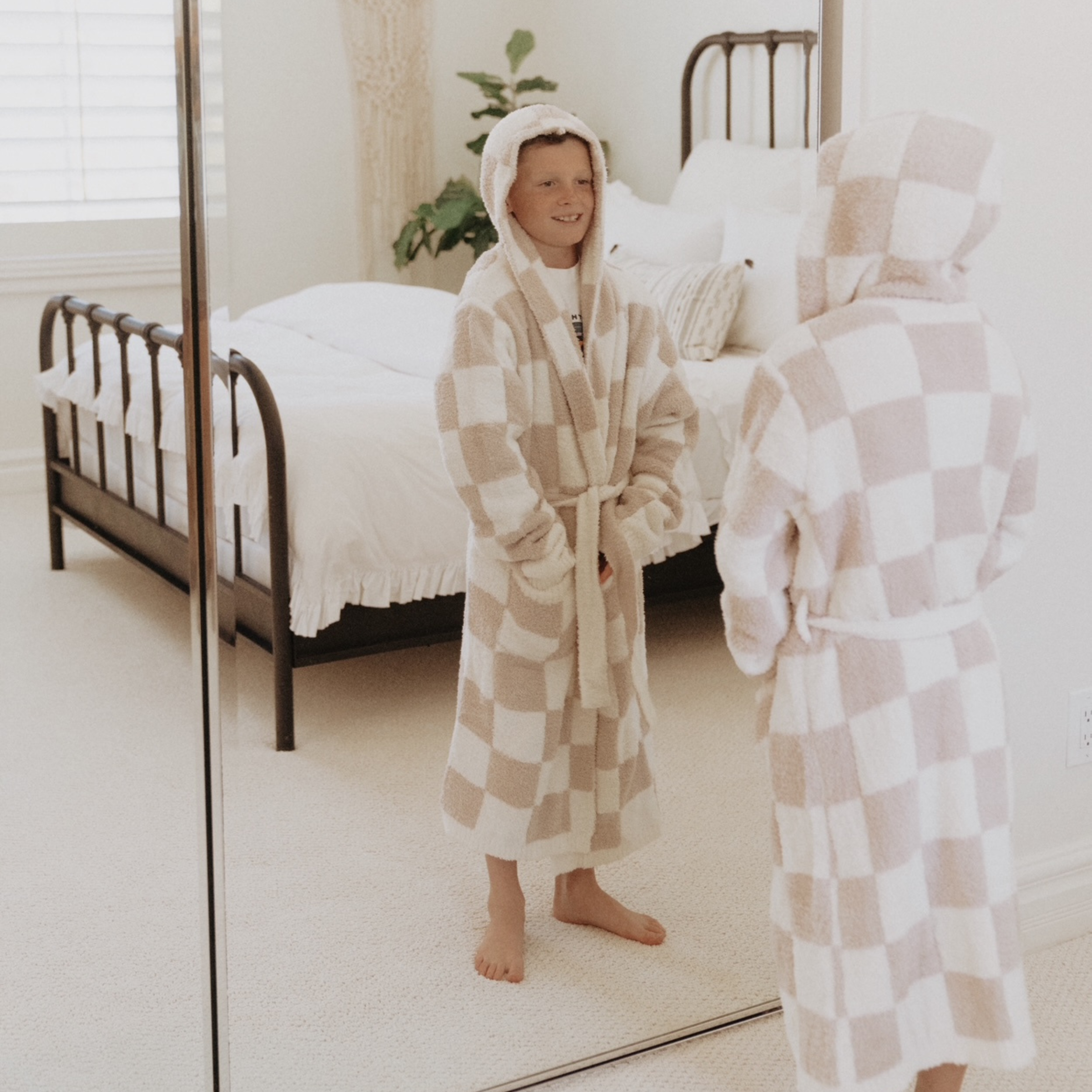 Introducing the Local Beach Kids Hooded Cozy Robe featuring soft and incredibly plush microfiber. Two sizes with center tie. 100% Feather Knit construction with an ultra soft hand. Perfect for the littles to wrap up in. Features the same material as our blankets creating the softest robe ever.