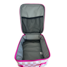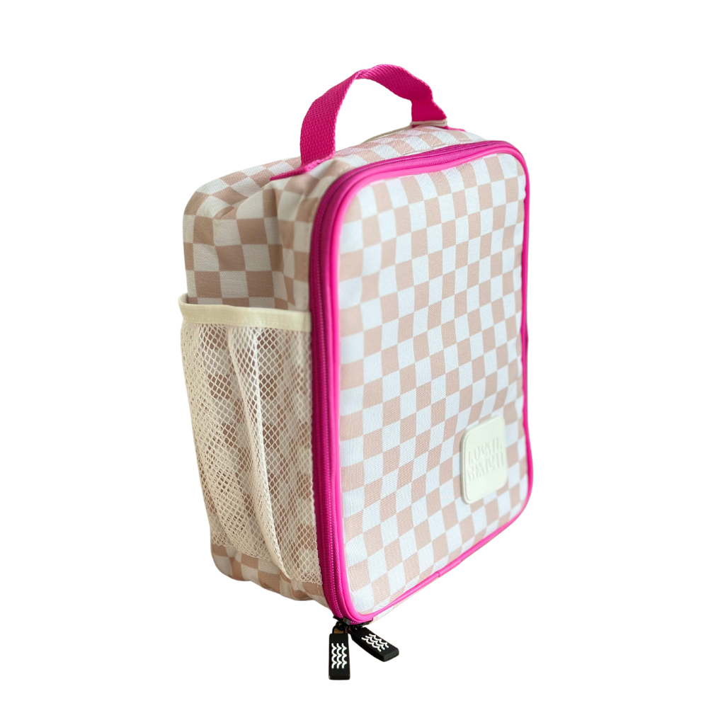 This is the cutest of all lunchboxes. Features an outer mesh drink holder. The insulated inside is generous in size for a bento box or all kinds of snacks. Inside mesh pocket designed for a skinny ice pack or miscellaneous utensils. School ready, Mom approved, and ready for a fun lunch break. Fits perfect in any backpack. 11in x 9in x 5in