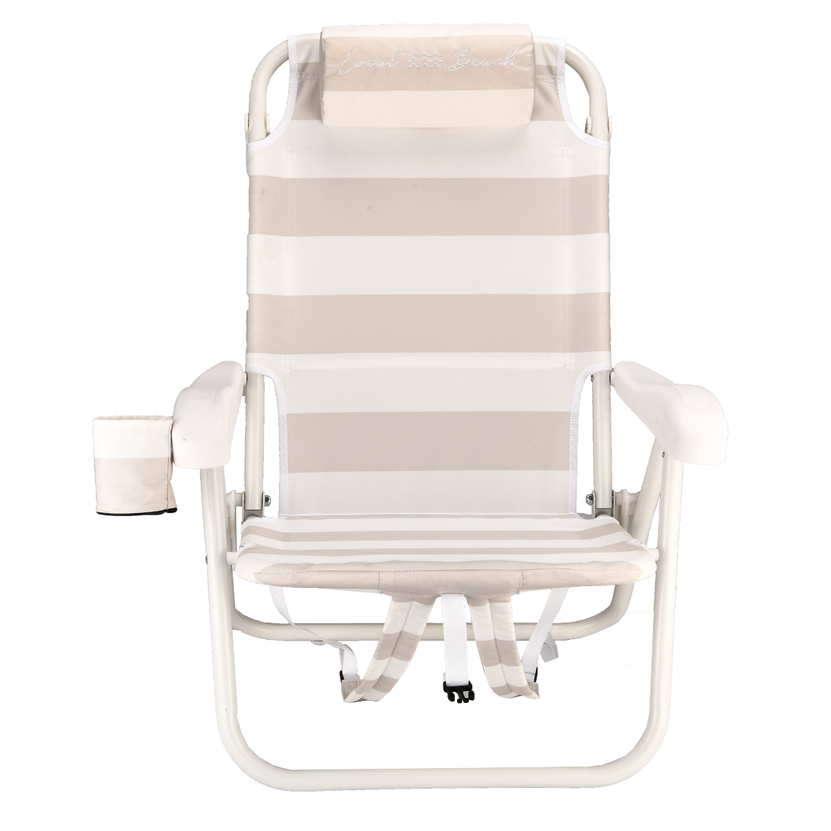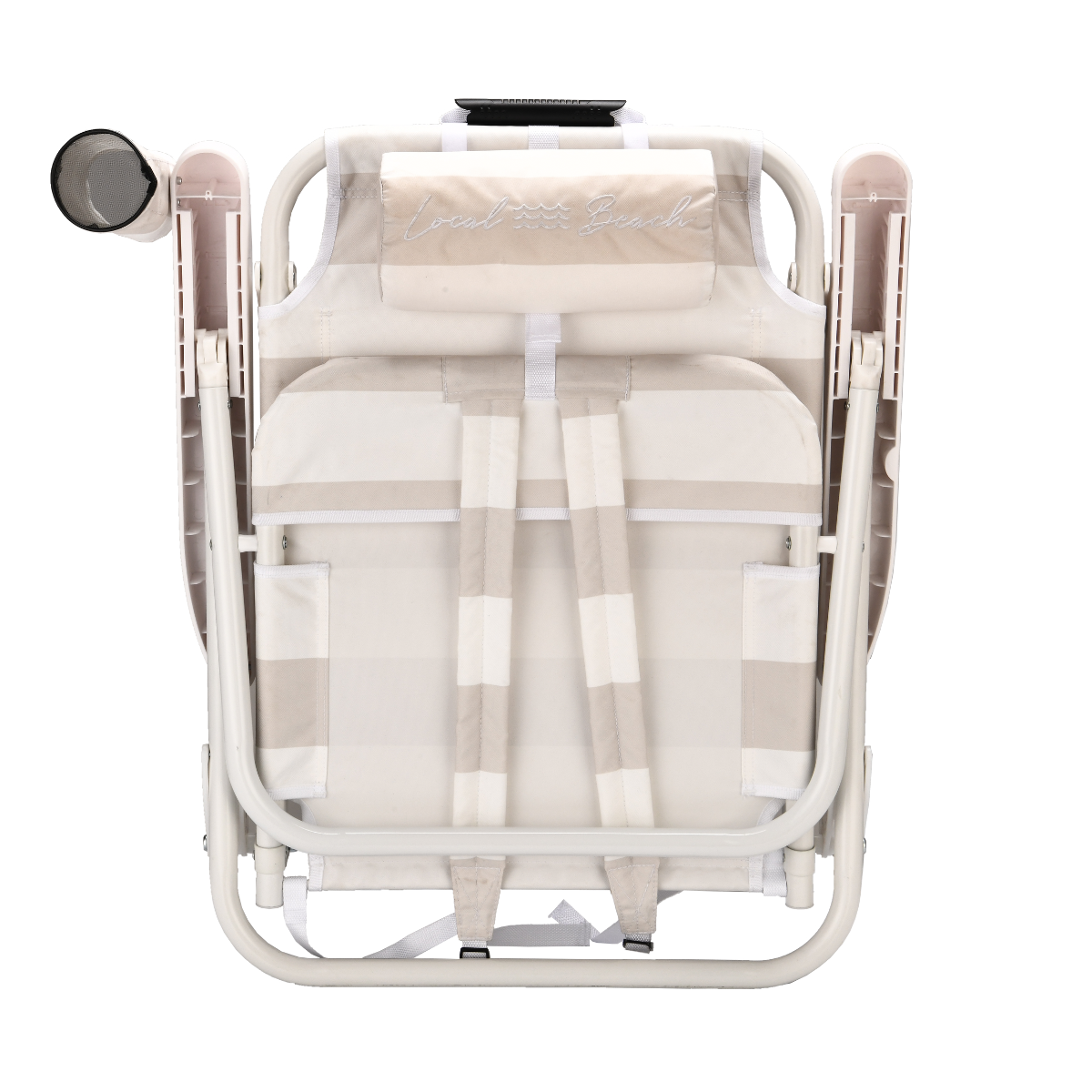 Local Beach Brush Thick Stripe Back Pack Beach Chair in Taupe